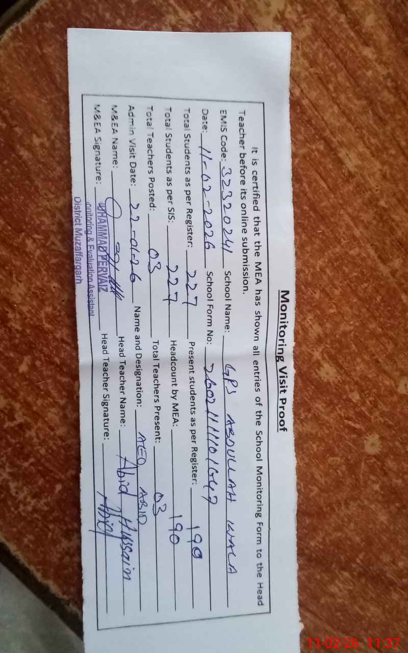 | EMIS Code: 32320241 | Name of School: GPS ABDULLAH WALA | |||