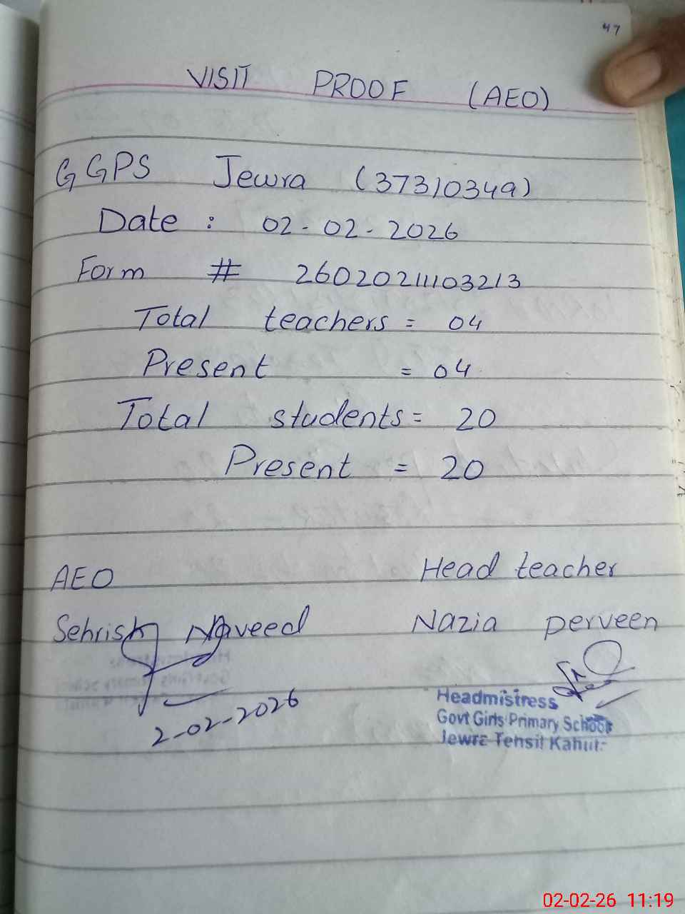 | EMIS Code: 37310349 | Name of School: GGPS JEWARA | |||