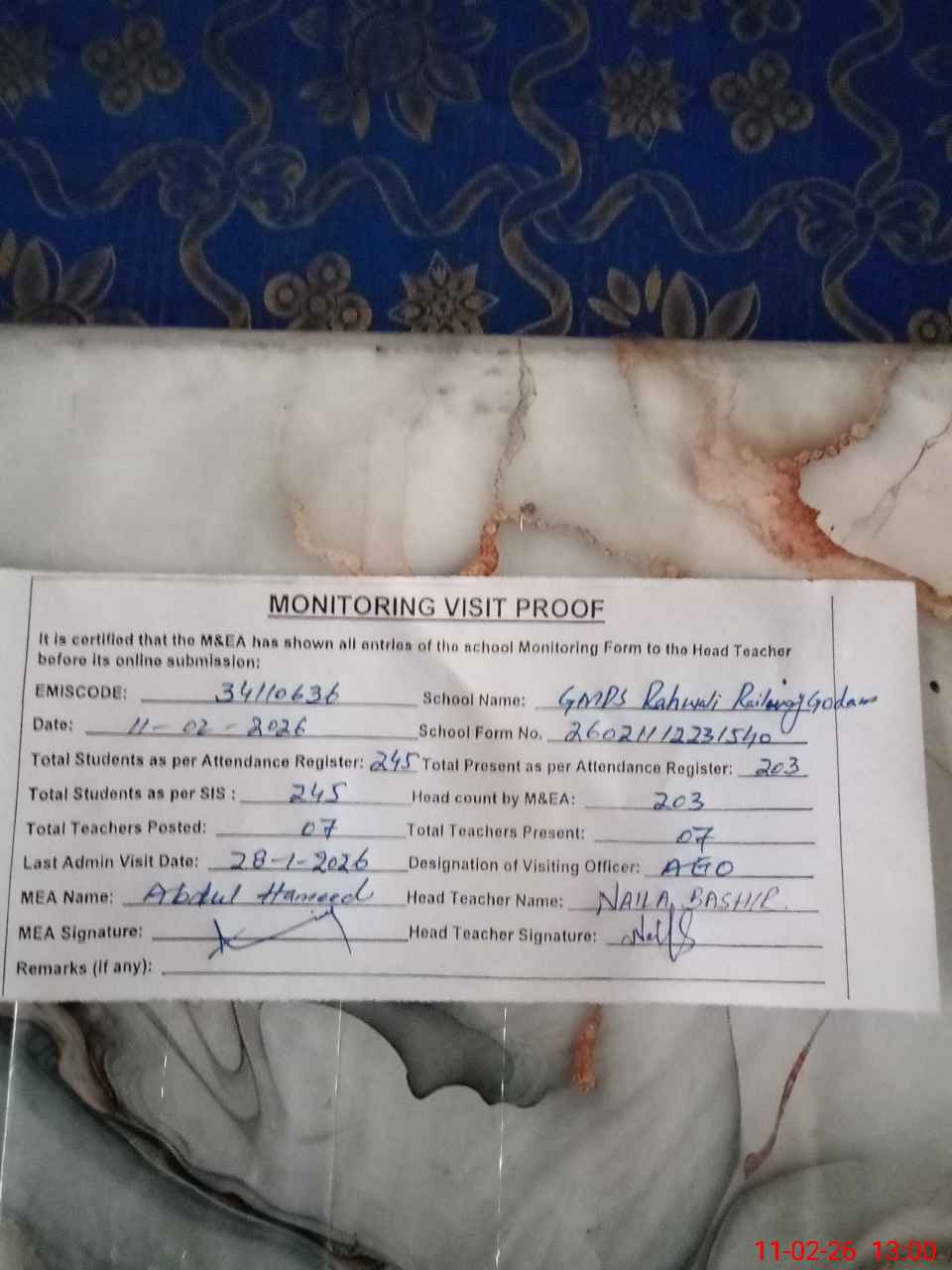 | EMIS Code: 34110636 | Name of School: GMPS RAILWAY GODAM | |||