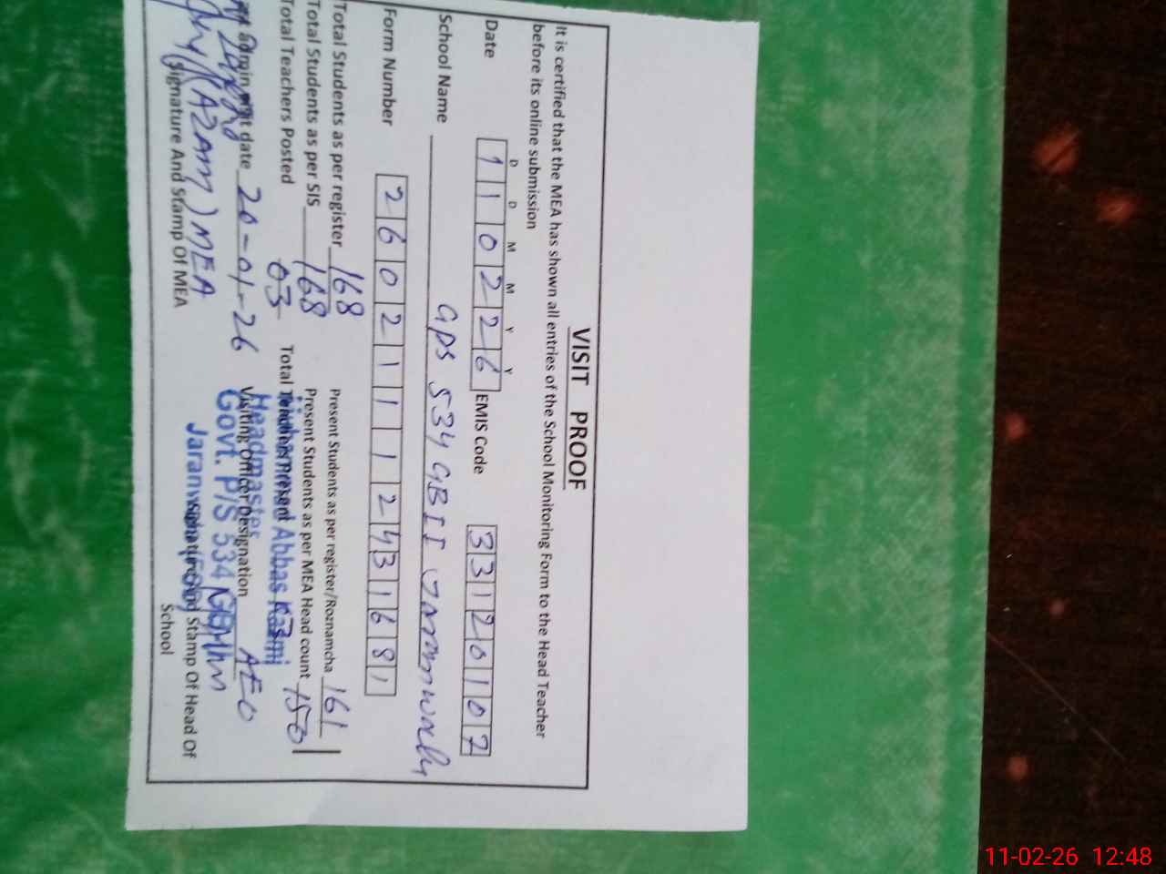 | Certified that this School was Inspected by the Undersigned MEA/DMO Today and the Information Stated Above is as Per Record. | |||||