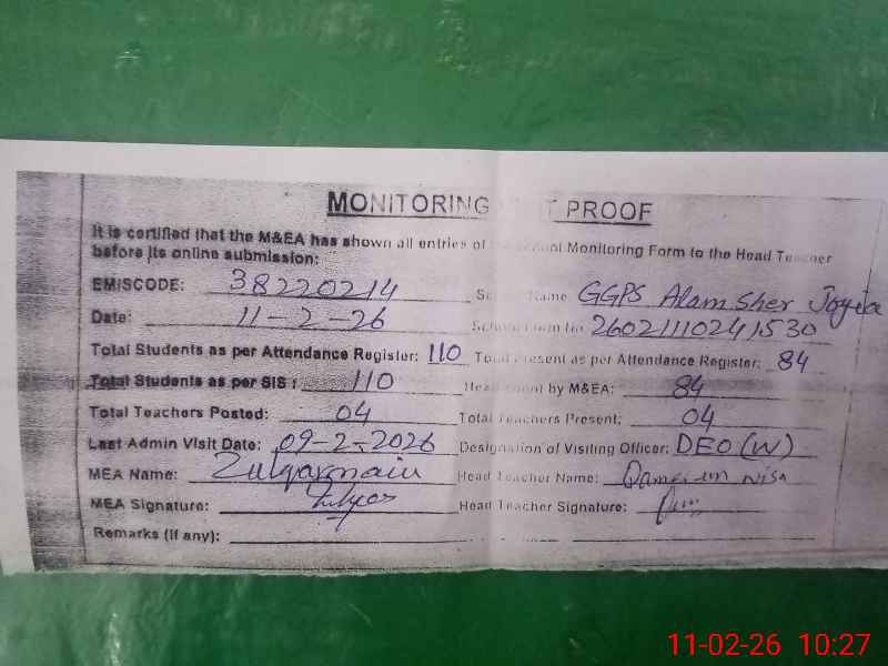 | EMIS Code: 38220214 | Name of School: GGPS MOHALLA ALAM SHER JOYIA | |||