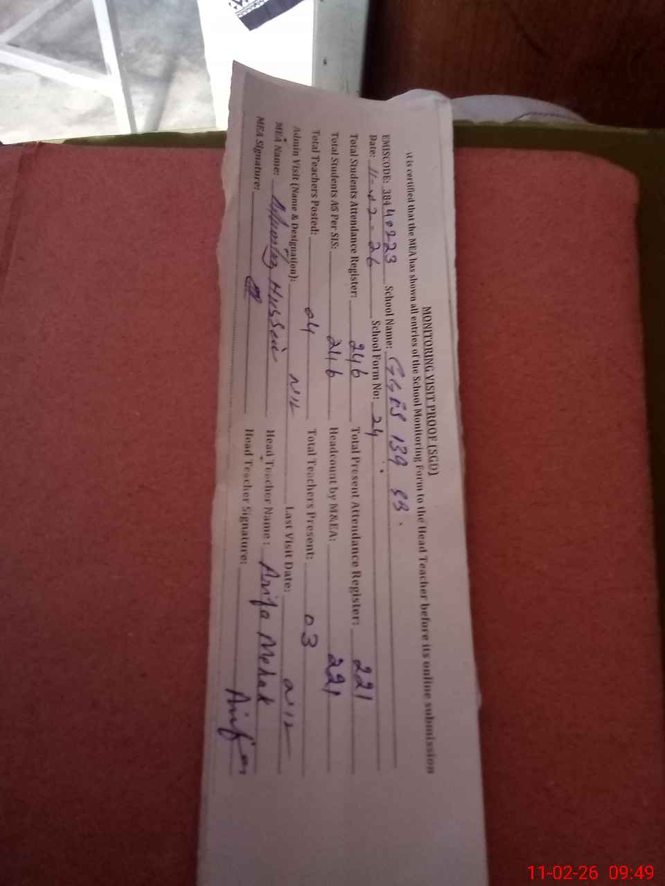 | Certified that this School was Inspected by the Undersigned MEA/DMO Today and the Information Stated Above is as Per Record. | |||||