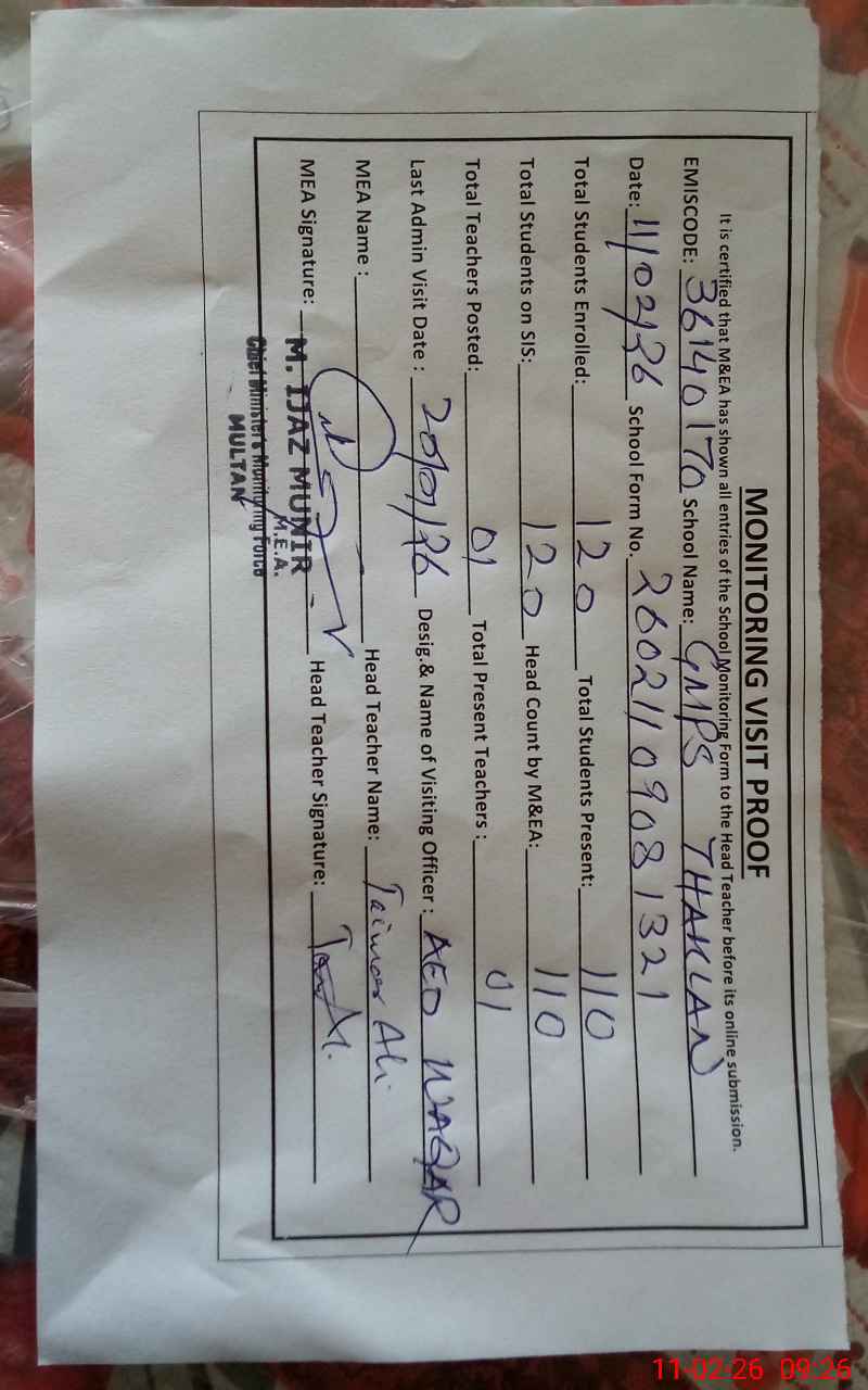 | EMIS Code: 36140170 | Name of School: GMPS THAKLAN JALALPUR PIRWALA | |||