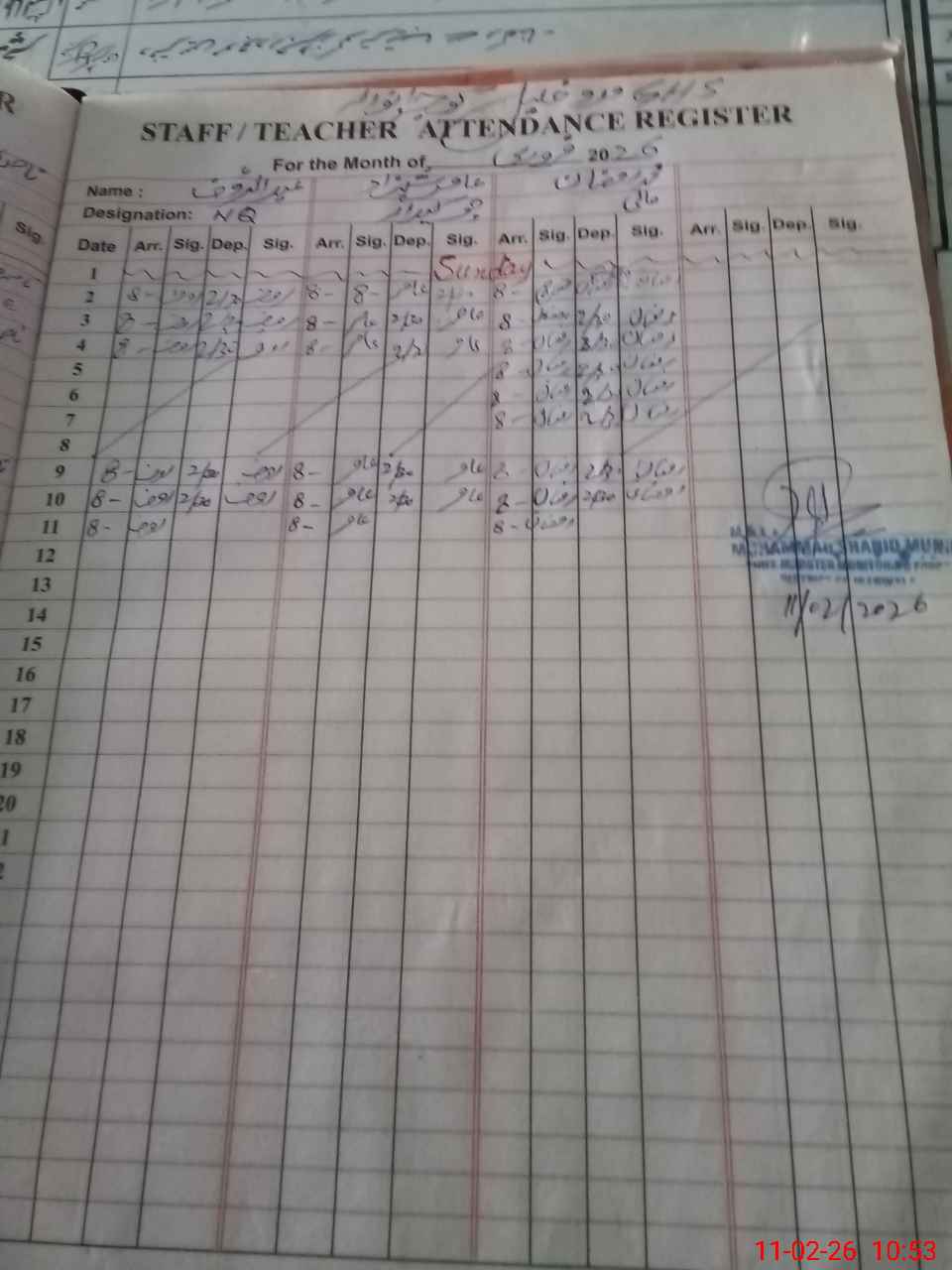 | 34**** | Ma**** Hu**** | PST Science/Maths | Regular | 0 | 0 | 0 | 0 | 0 | 0 | 0 | 0 | 0 | Absent (Un-Authorized) |