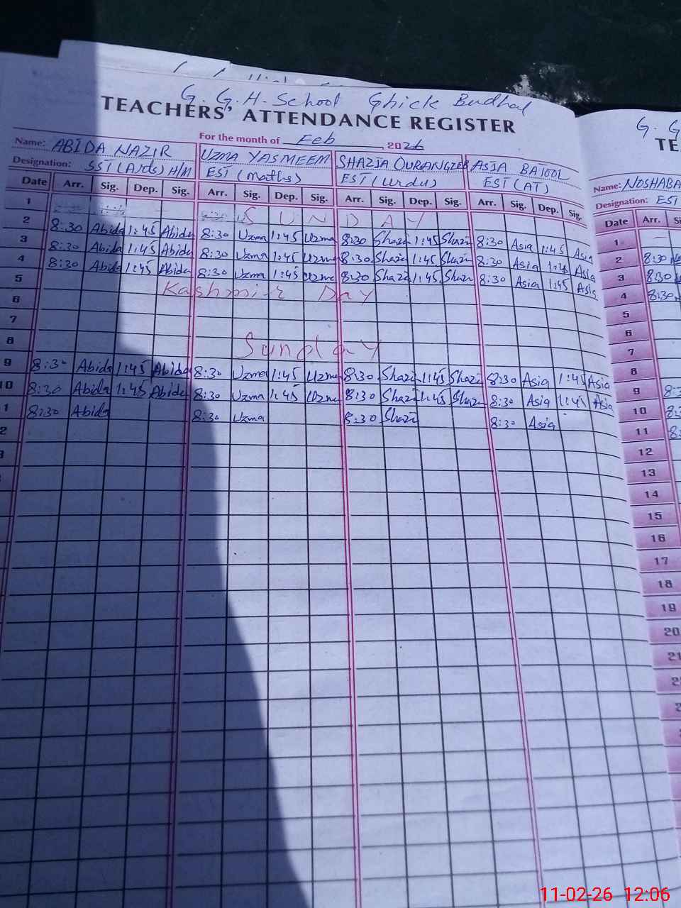 | Name: Ab**** Na**** Designation: (School Headmaster's/Headmistress's) SST (GENERAL) Phone/Cell Number: 03**** |