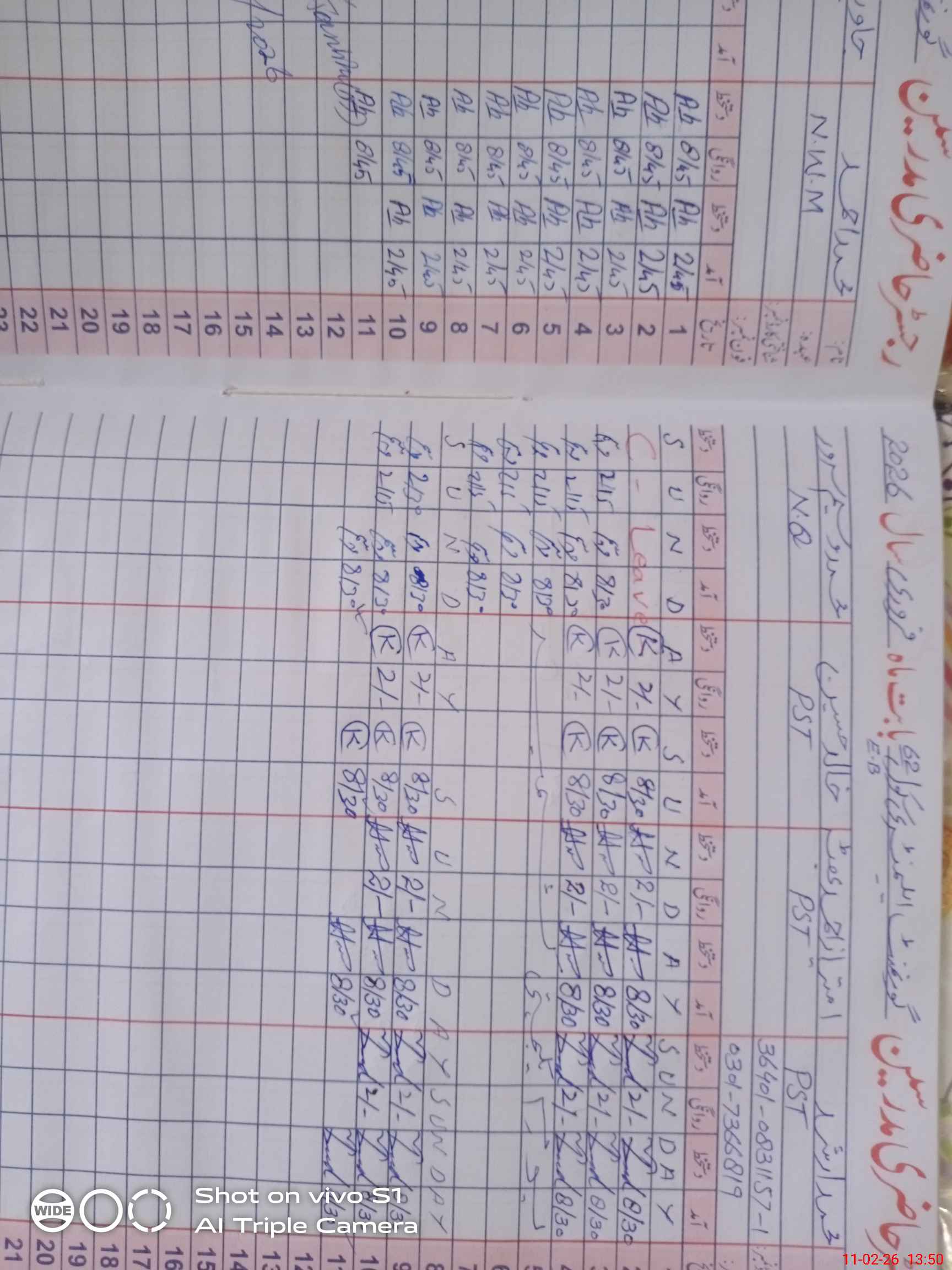 | CNIC | Full Name | Designation | R/C | Absence During Last Calender Month |