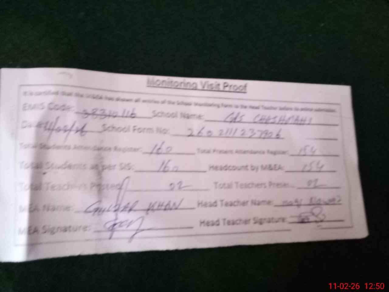 | EMIS Code: 38310116 | Name of School: GPS CHASHMAI | |||