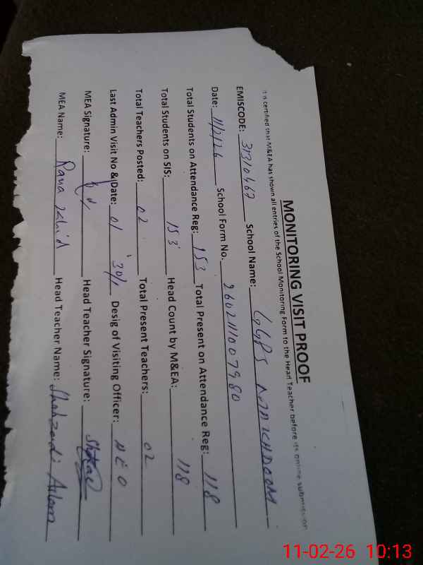 | Attendance Register | Head Teacher | MEA with School | Visit Proof |