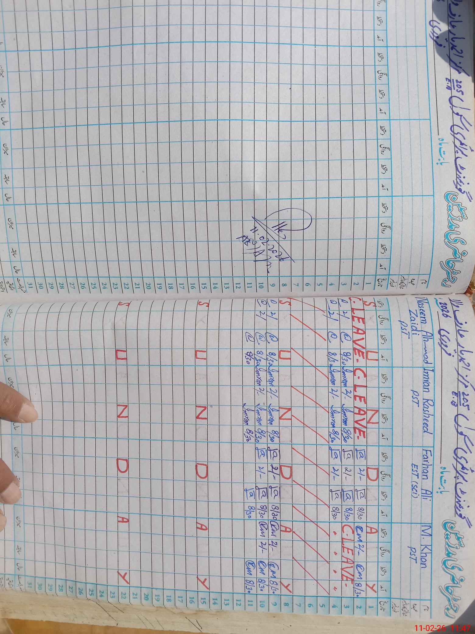 | CNIC | Full Name | Designation | R/C | Absence During Last Calender Month |