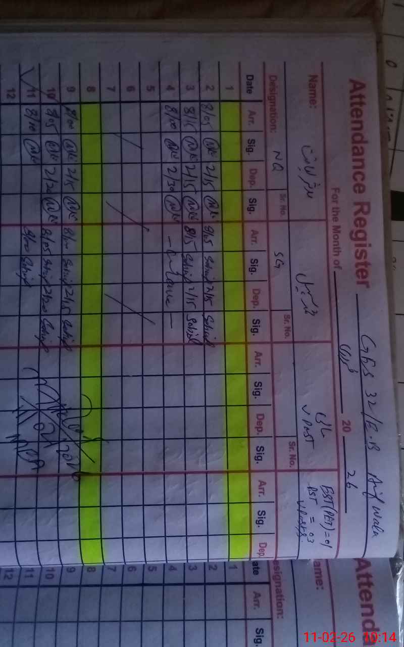 | CNIC | Full Name | Designation | R/C | Absence During Last Calender Month |