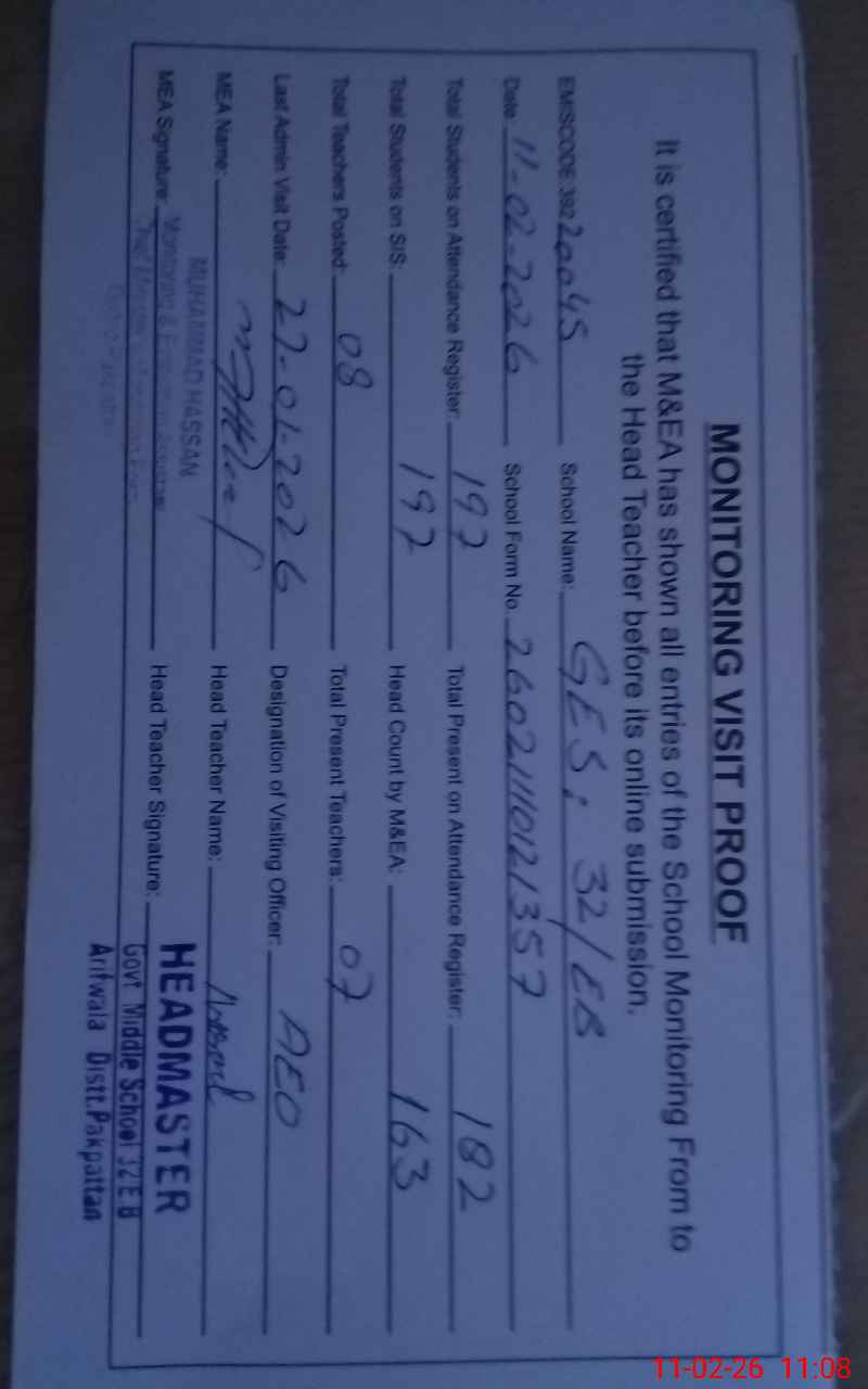 | EMIS Code: 39220045 | Name of School: GES CHAK NO. 32 / EB | |||
