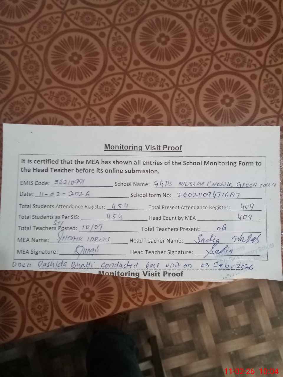 | EMIS Code: 35210991 | Name of School: GGPS MUSLIM CHOWK GREEN TOWN (EX-MCL) | |||