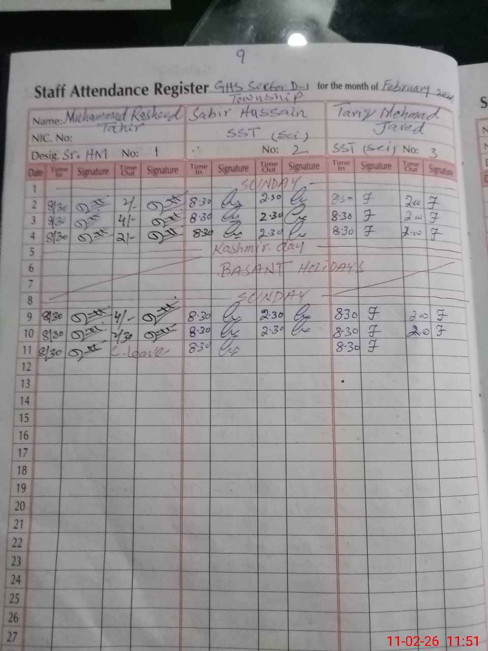 | Remarks (Use Separate Page if Required): 1 Syed Atta ul Mustafa PST had been died since 07 November, 2025 but his name still available in the school list | |||||