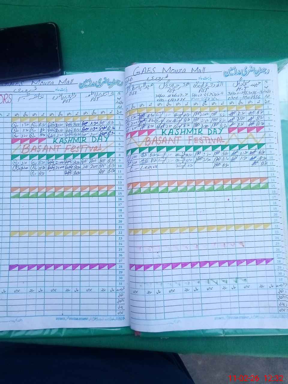 | CNIC | Full Name | Designation | R/C | Absence During Last Calender Month |