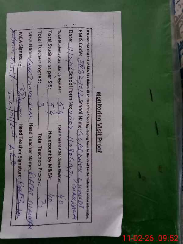 | EMIS Code: 38321012 | Name of School: GGPS GHANDI CHAKRALA MIANWALI | |||