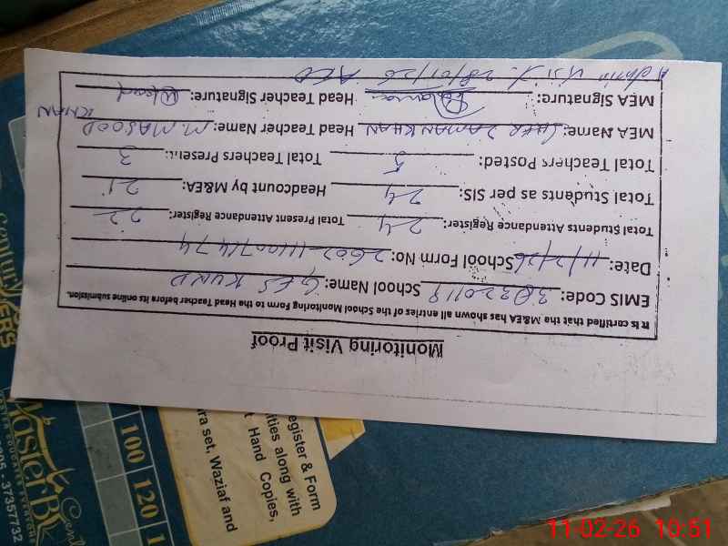 | Attendance Register | Head Teacher | MEA with School | Visit Proof |
