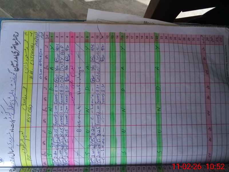 | CNIC | Full Name | Designation | R/C | Absence During Last Calender Month |