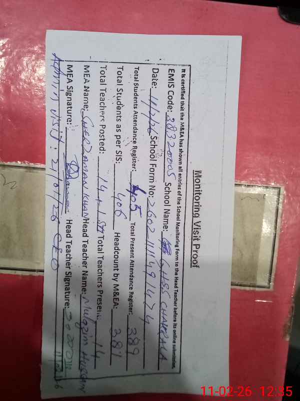 | Attendance Register | Head Teacher | MEA with School | Visit Proof |