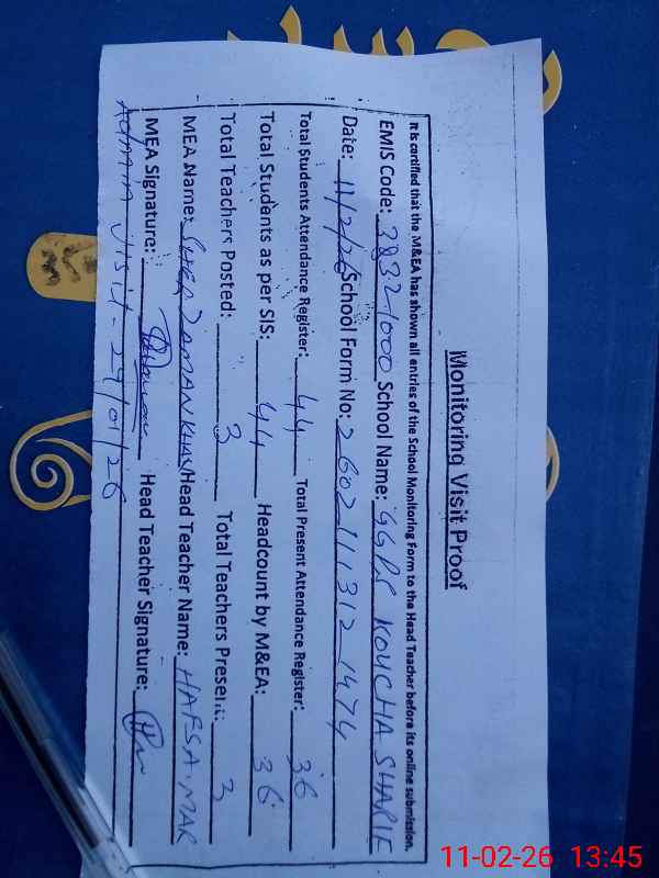 | EMIS Code: 38321000 | Name of School: GGPS KOUCHA SHREEF CHAKRLA MIANWALI | |||