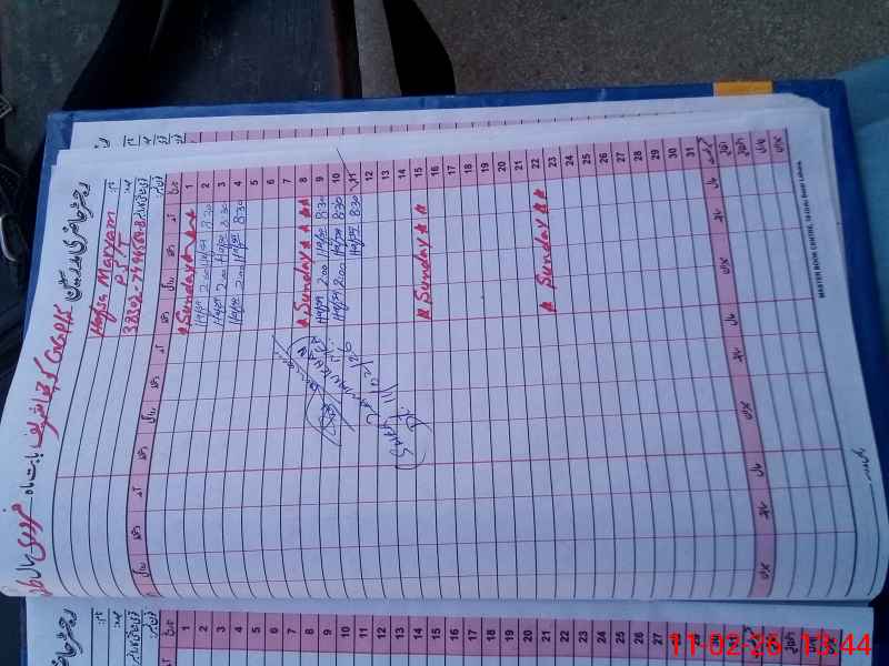 | CNIC | Full Name | Designation | R/C | Absence During Last Calender Month |