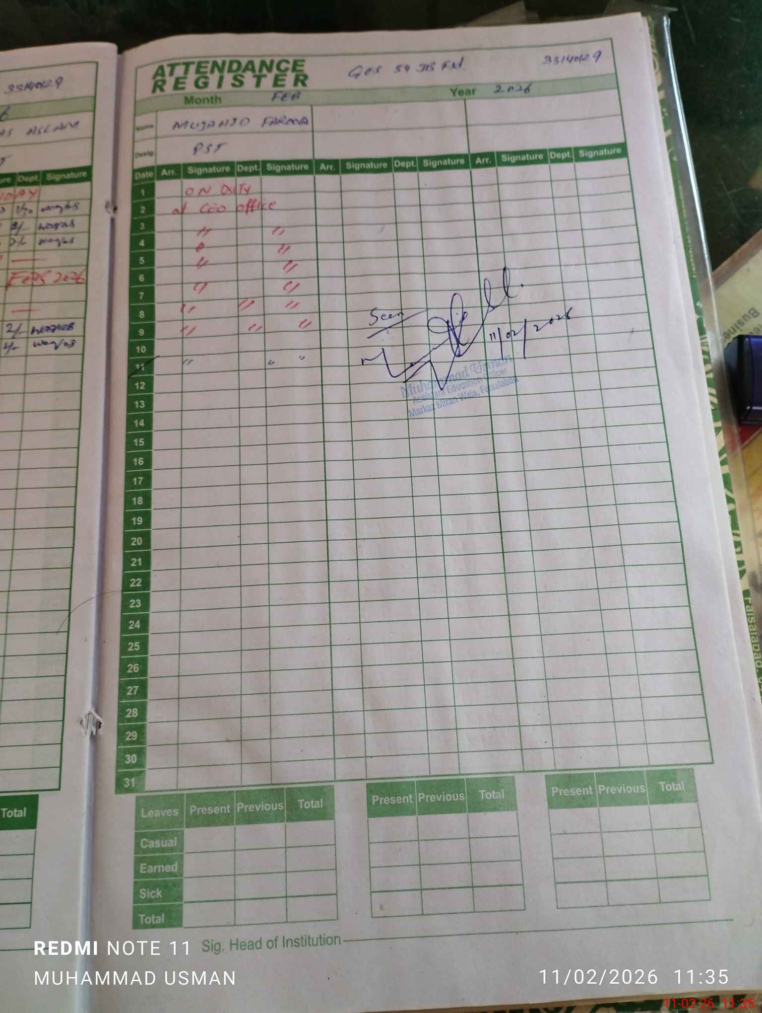 | Attendance Register | Head Teacher | MEA with School | Visit Proof |