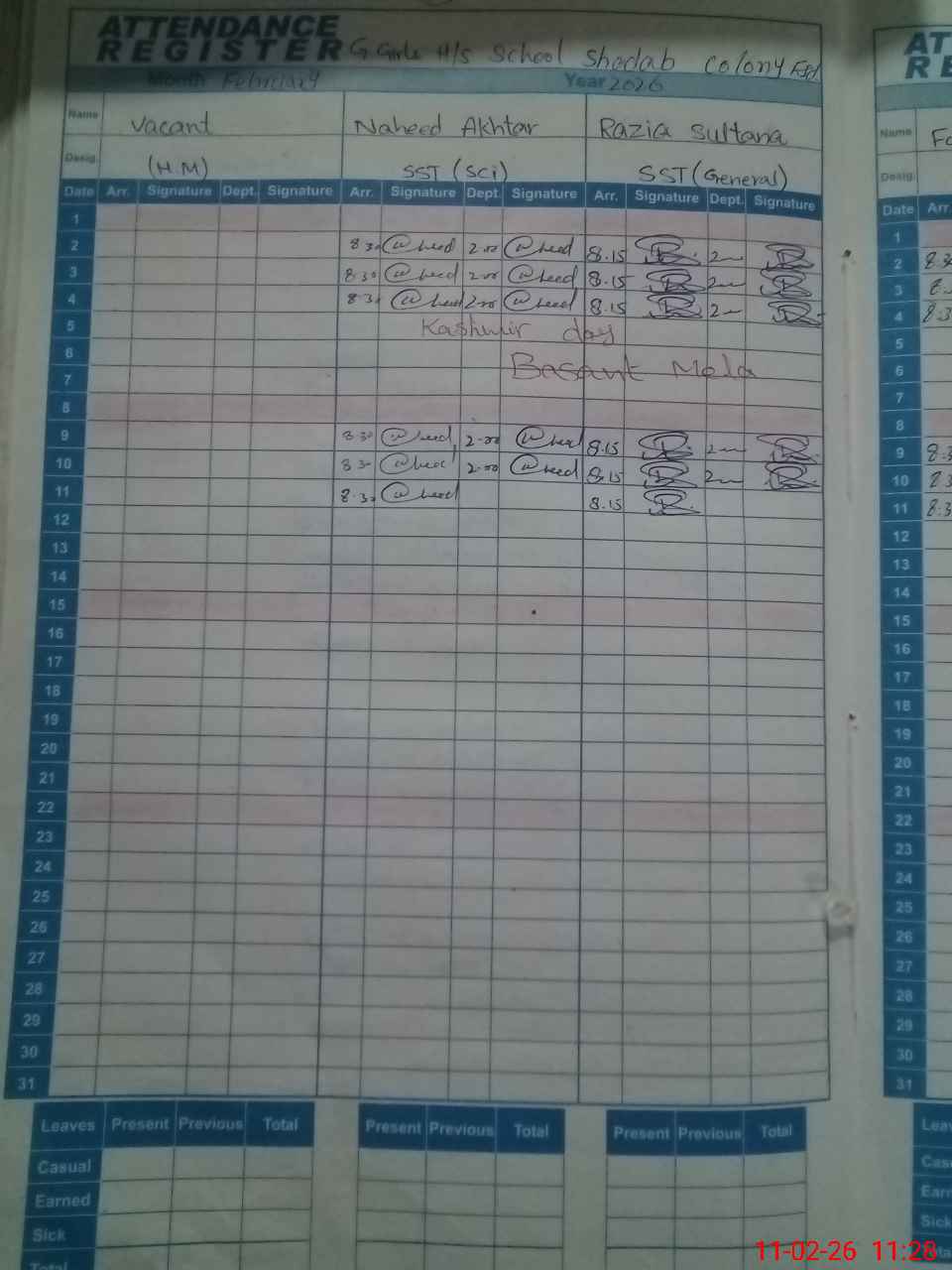 | Leave | Duty | Absent | Maternity | Medical | Ex- Pak |