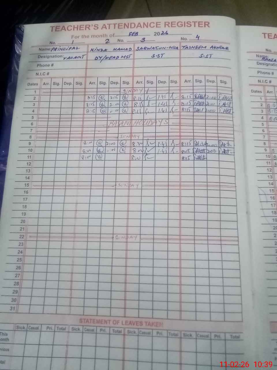 | 35**** | Ab**** Fi**** | EST Urdu | Regular | 1 | 0 | 0 | 0 | 0 | 0 | 0 | 0 | 1 | Exam Duty |