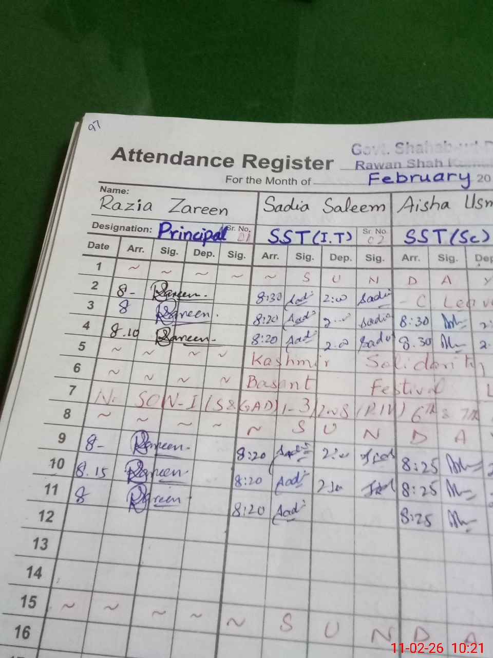| 00**** | MAw**** Ha**** | JC | 0 | 0 | 31 | 0 | 0 | 0 | 0 | 0 | 0 | Absent (Un-Authorized) | |