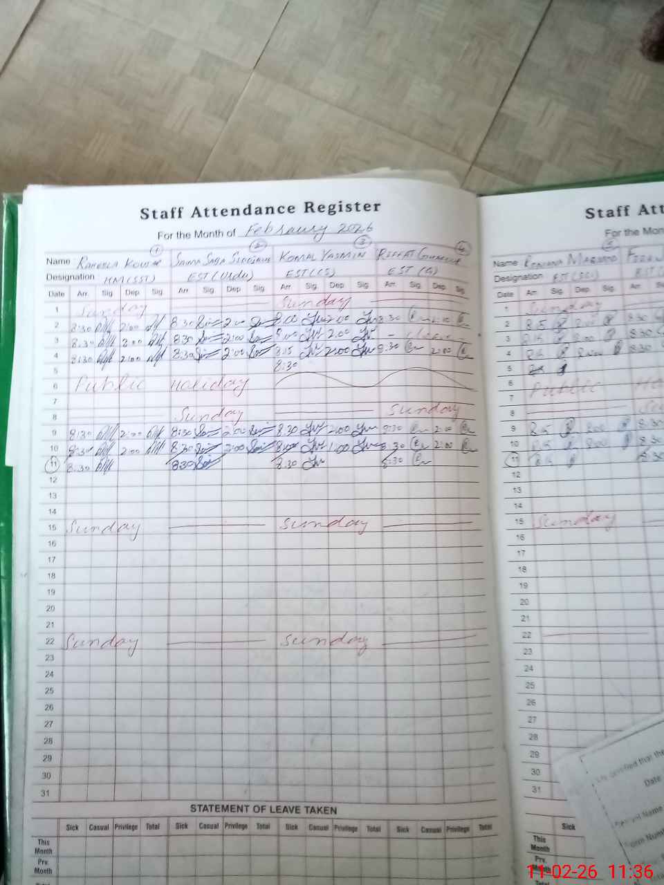 | Attendance Register | Head Teacher | MEA with School | Visit Proof |