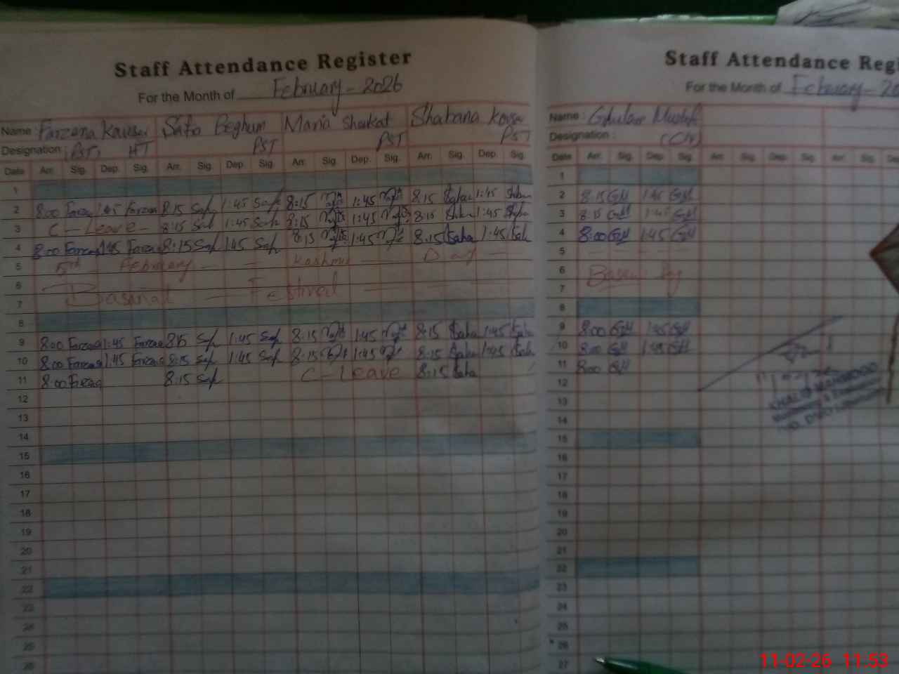 | 37**** | Ma**** Sh**** | PST Science/Maths | Regular | 0 | 0 | 0 | 0 | 0 | 0 | 0 | 0 | 0 | Casual |