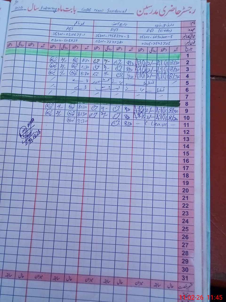 | Name: Mu**** Na**** Designation: (School Headmaster's/Headmistress's) PST Phone/Cell Number: 03**** |