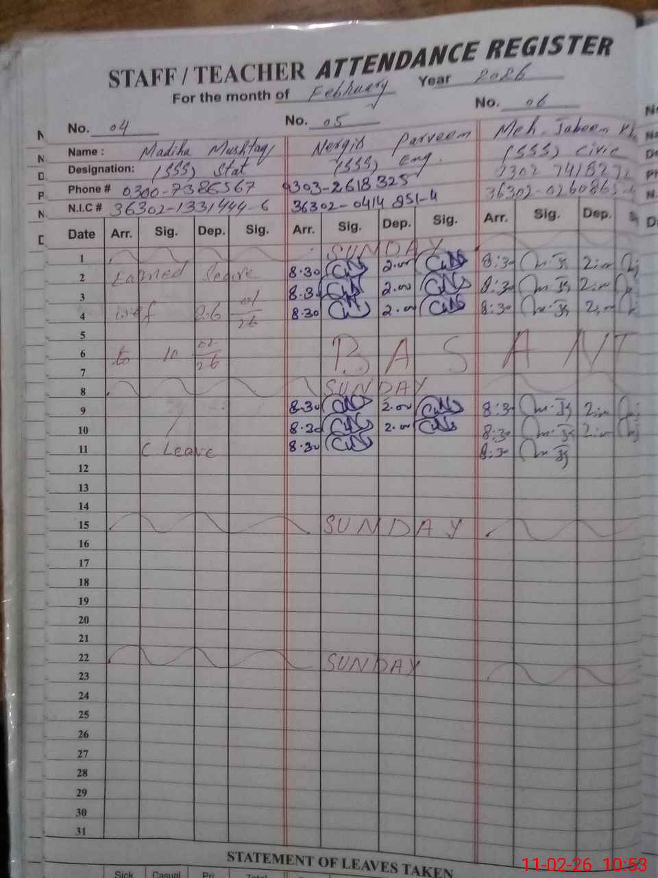 | 36**** | Fa**** Na**** | SSS Islamiat | Regular | 0 | 0 | 0 | 0 | 0 | 0 | 0 | 0 | 0 | Absent (Un-Authorized) |