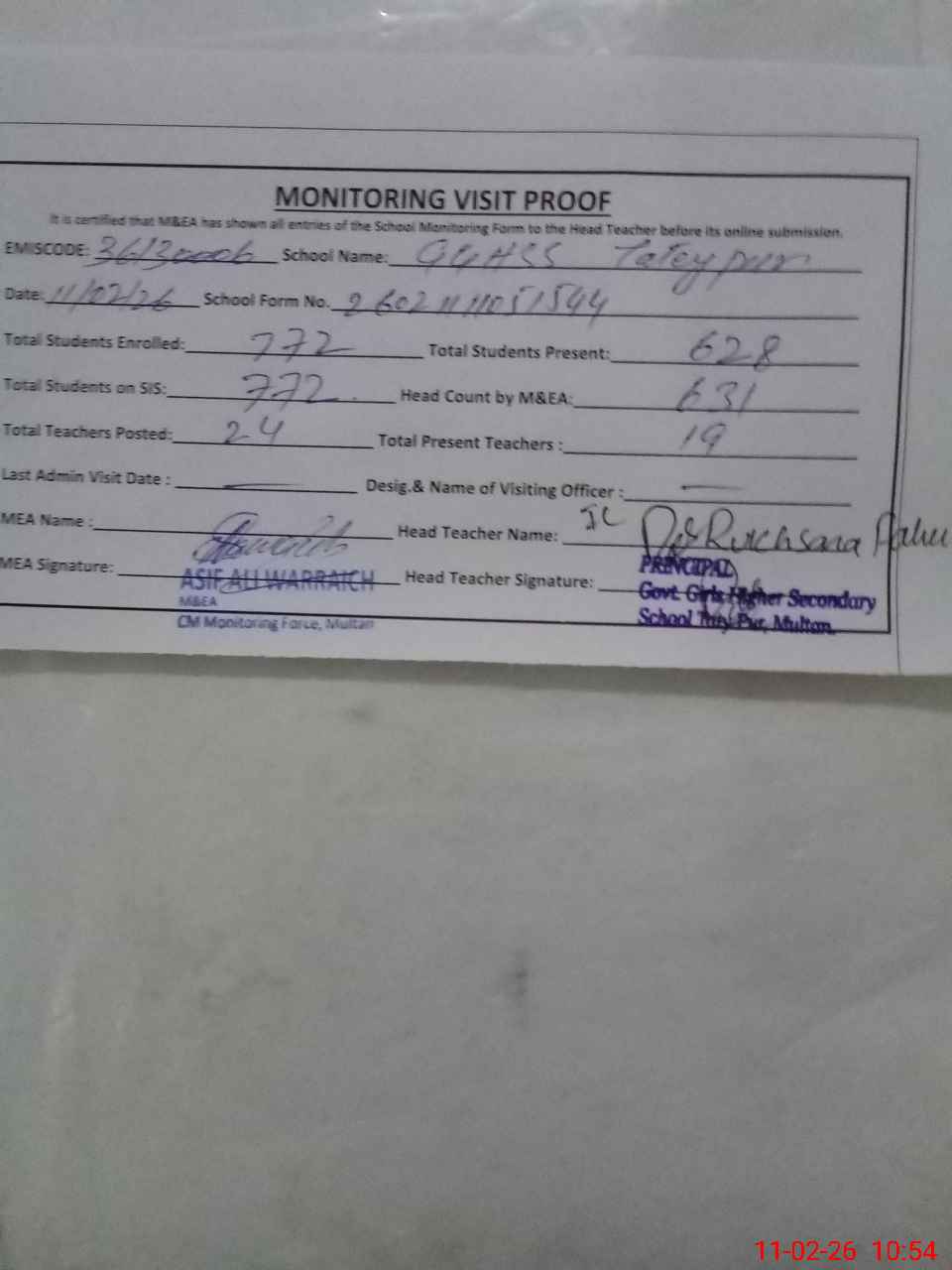 | EMIS Code: 36130006 | Name of School: GGHSS TATEY PUR | |||