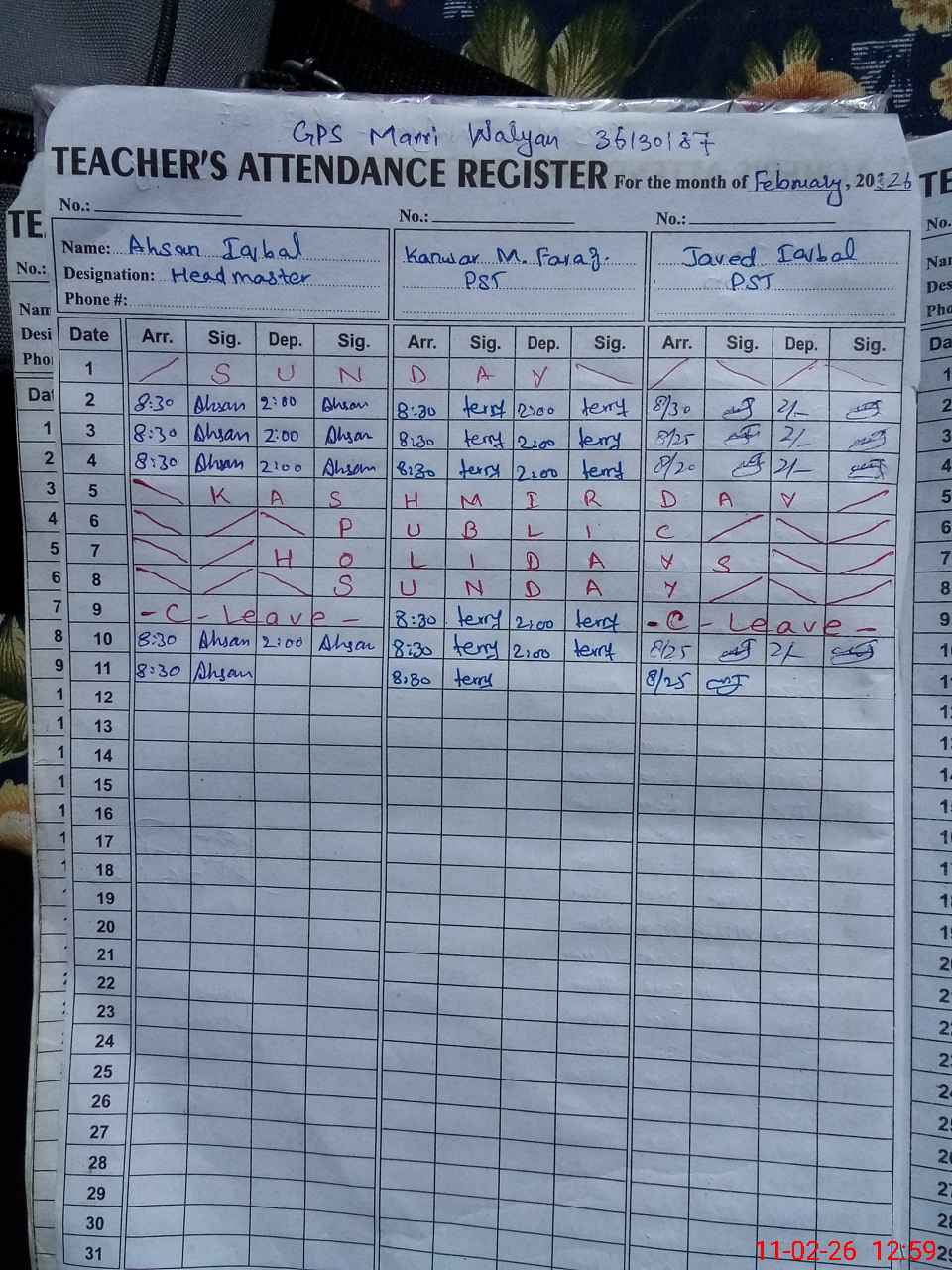 | Name: AH**** IQ**** Designation: (School Headmaster's/Headmistress's) PST Phone/Cell Number: 03**** |