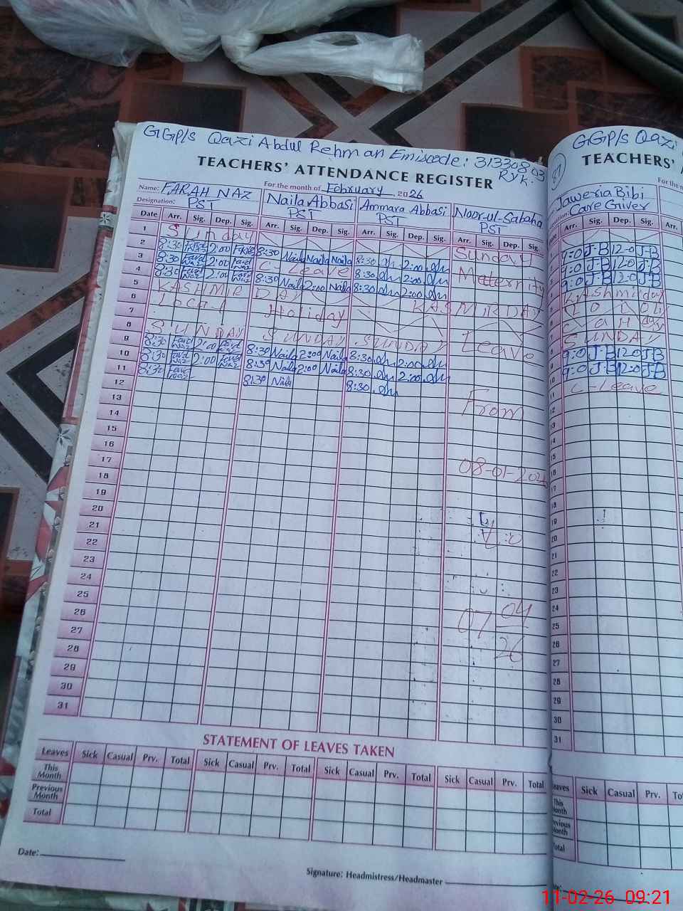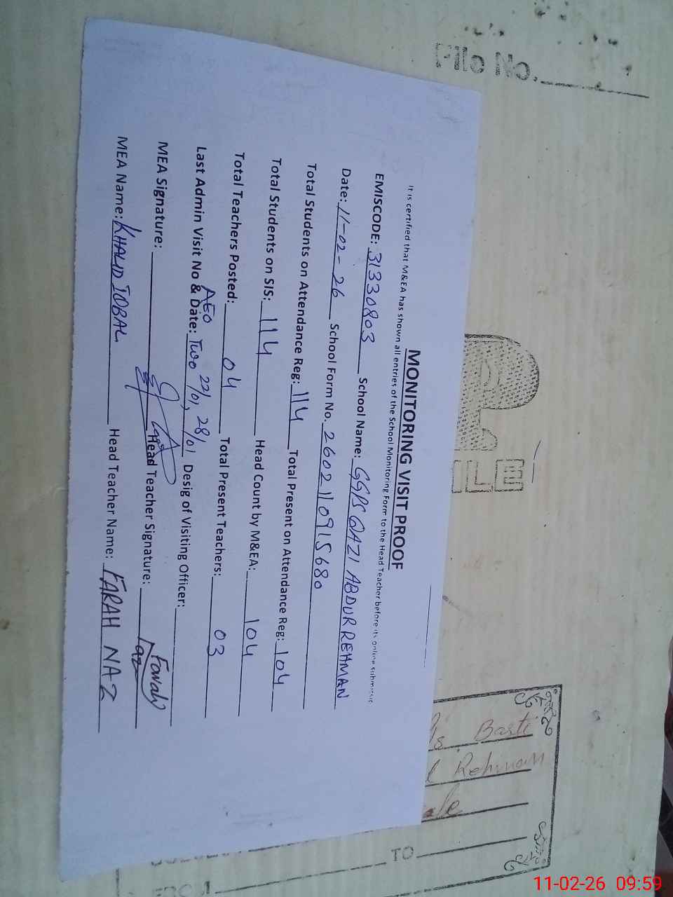 | EMIS Code: 31330803 | Name of School: GGPS QAZI ABADUR REHMAN | |||
