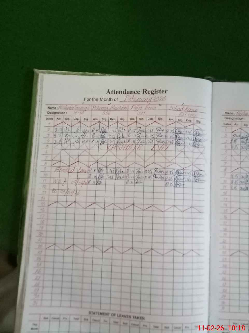 | Monitoring Date: 11-02-2026 | Start Time: 11-02-2026 10:11 AM | End Time: 11-02-2026 11:32 AM | Name of MEA: Kh**** Iq**** | |