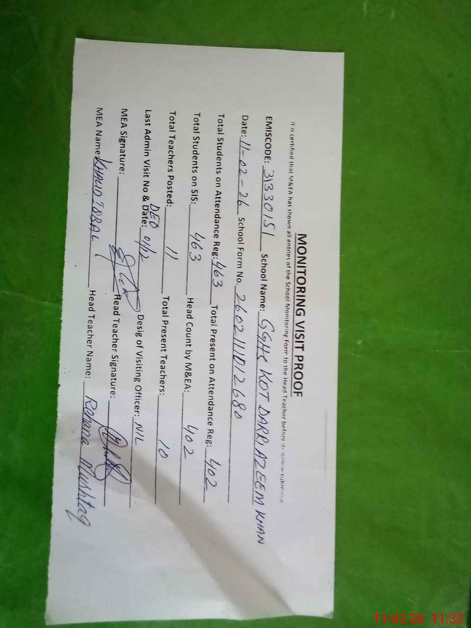 | EMIS Code: 31330151 | Name of School: GGHS KOT DARRI AZEEM KHAN | |||