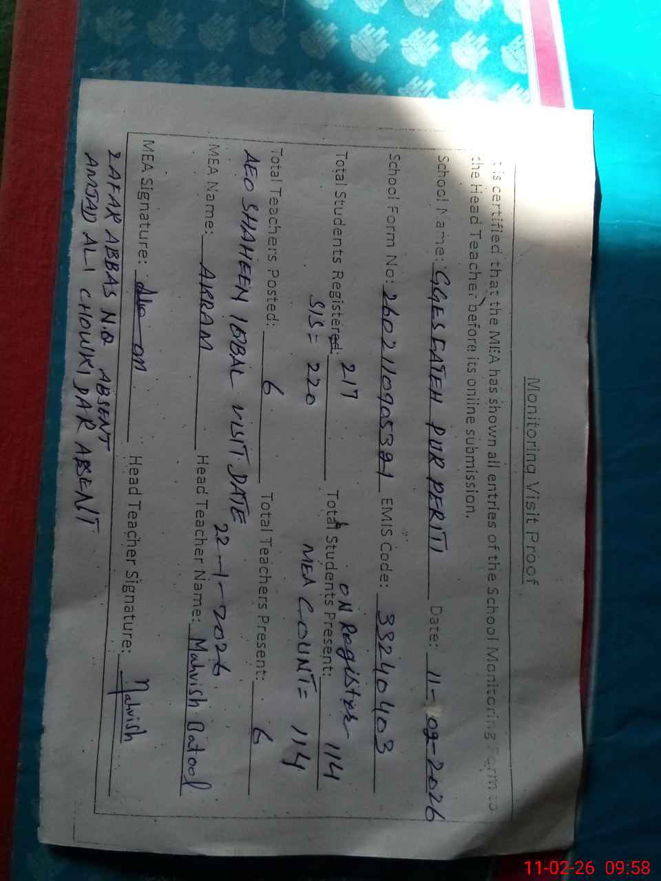 | EMIS Code: 33240403 | Name of School: GGES FATEH PUR PERITTI | |||