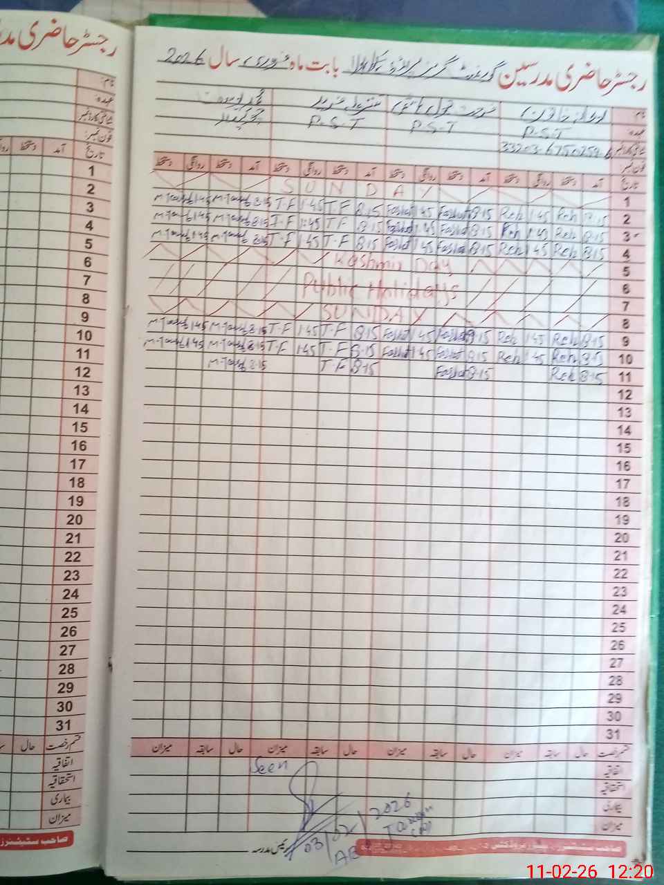 | Name: RE**** KH**** Designation: (School Headmaster's/Headmistress's) PST Phone/Cell Number: 03**** |