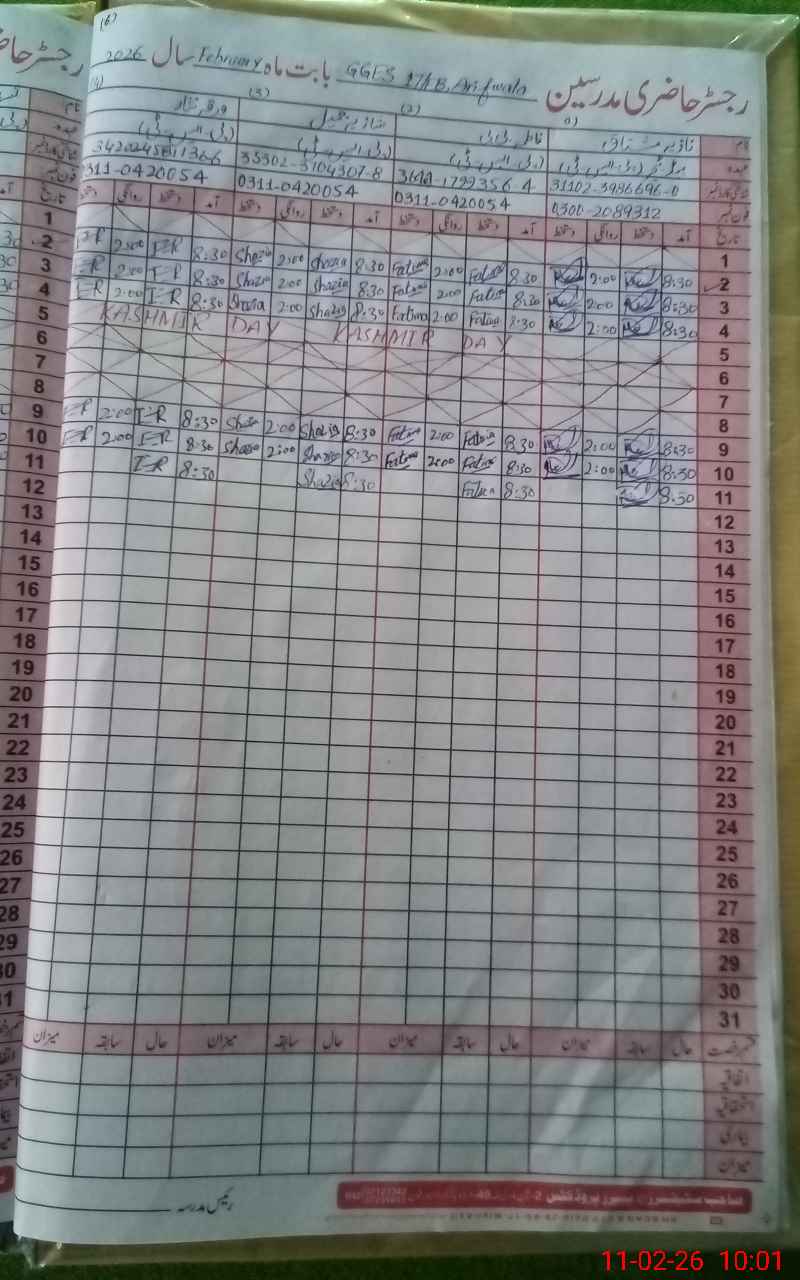 | Name: NA**** MU**** Designation: (School Headmaster's/Headmistress's) PST Phone/Cell Number: 03**** |