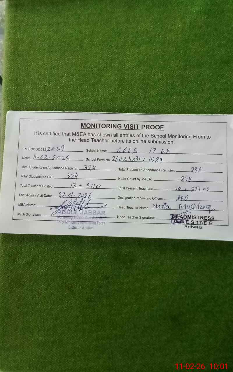 | EMIS Code: 39220319 | Name of School: GGES 17 EB | |||