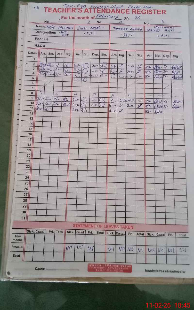 | Name: AB**** MA**** Designation: (School Headmaster's/Headmistress's) PST Phone/Cell Number: 03**** |