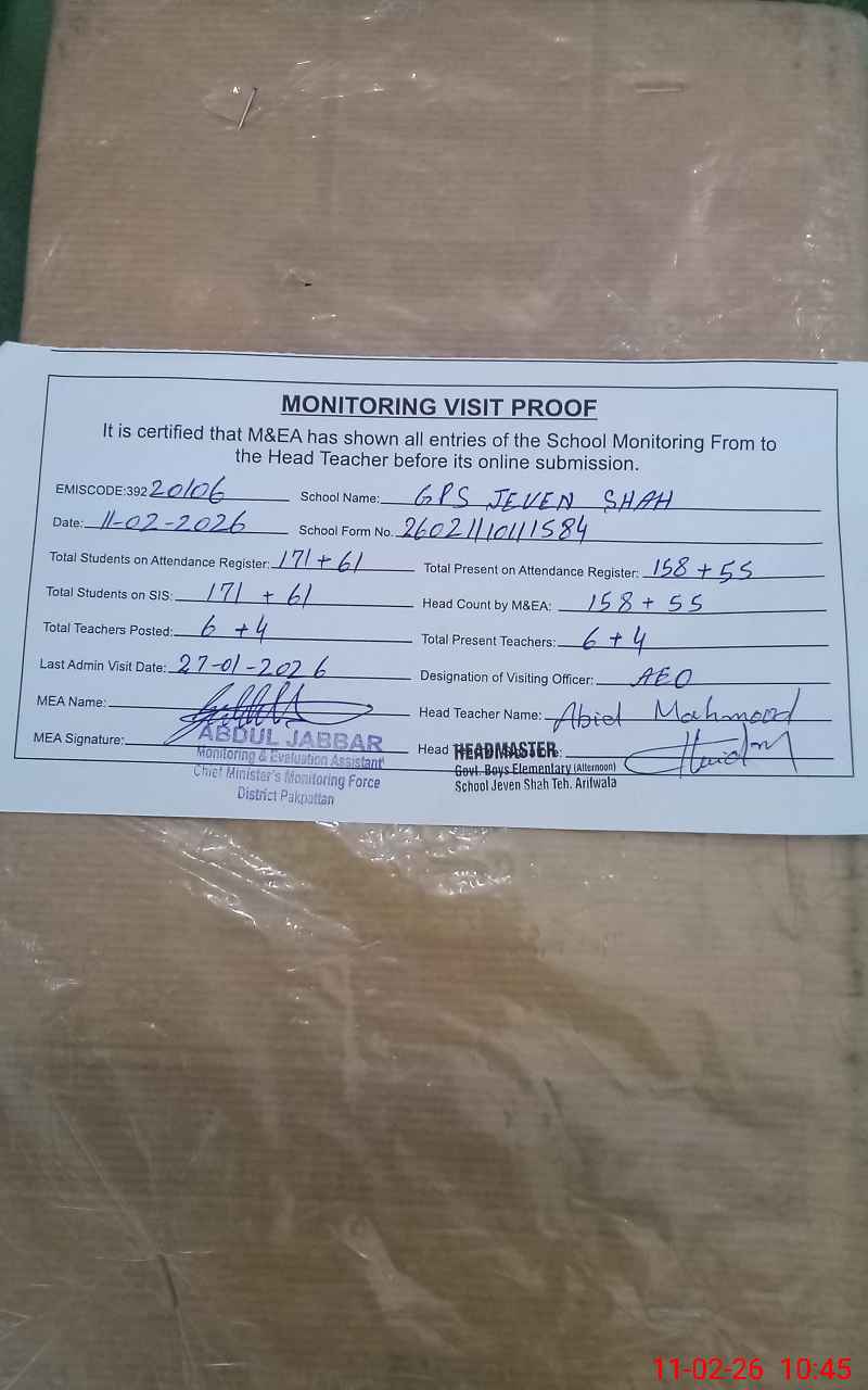 | EMIS Code: 39220106 | Name of School: GPS JEVEN SHAH | |||