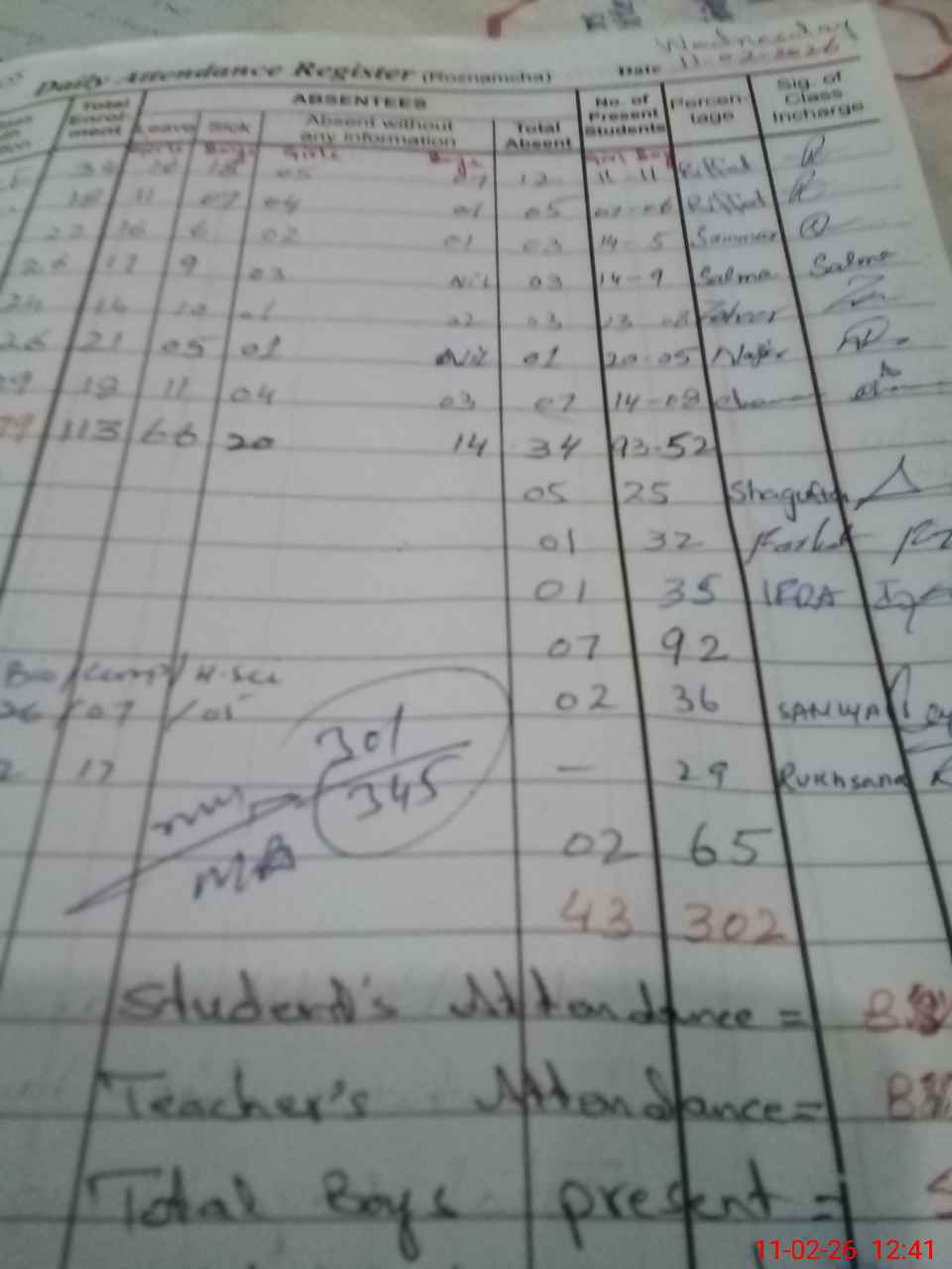 | Total Students Present | 0 | 22 | 19 | 23 | 21 | 25 | 22 | 25 | 32 | 35 | 35 | 29 | 301 | |||