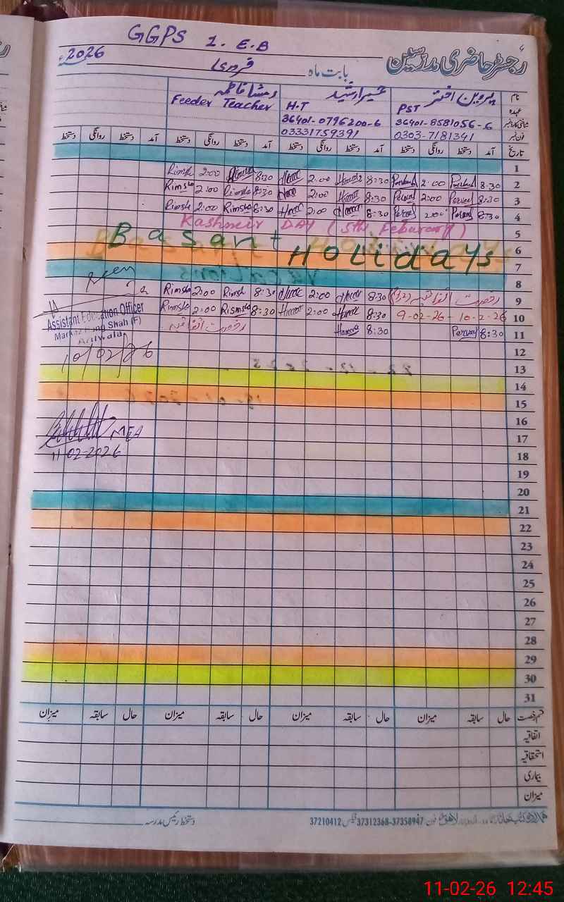 | Name: Hu**** Ra**** Designation: (School Headmaster's/Headmistress's) PST Phone/Cell Number: 03**** |
