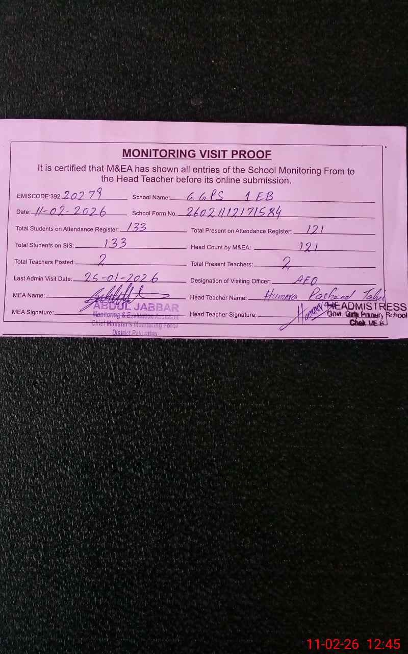 | EMIS Code: 39220279 | Name of School: GGPS 1 EB | |||