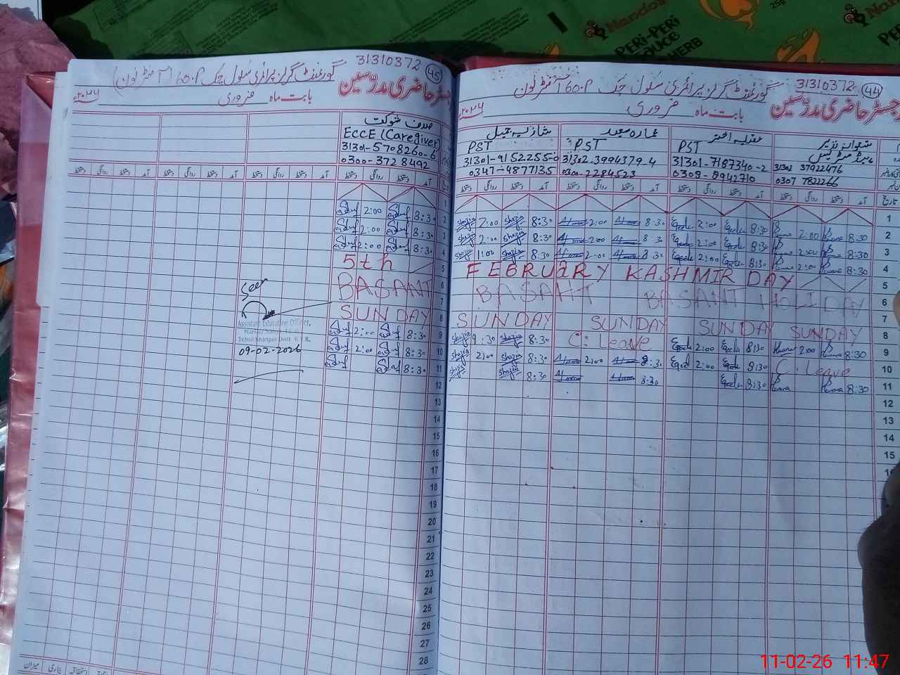 | Name: Sh**** Na**** Designation: (School Headmaster's/Headmistress's) PST Phone/Cell Number: 03**** |