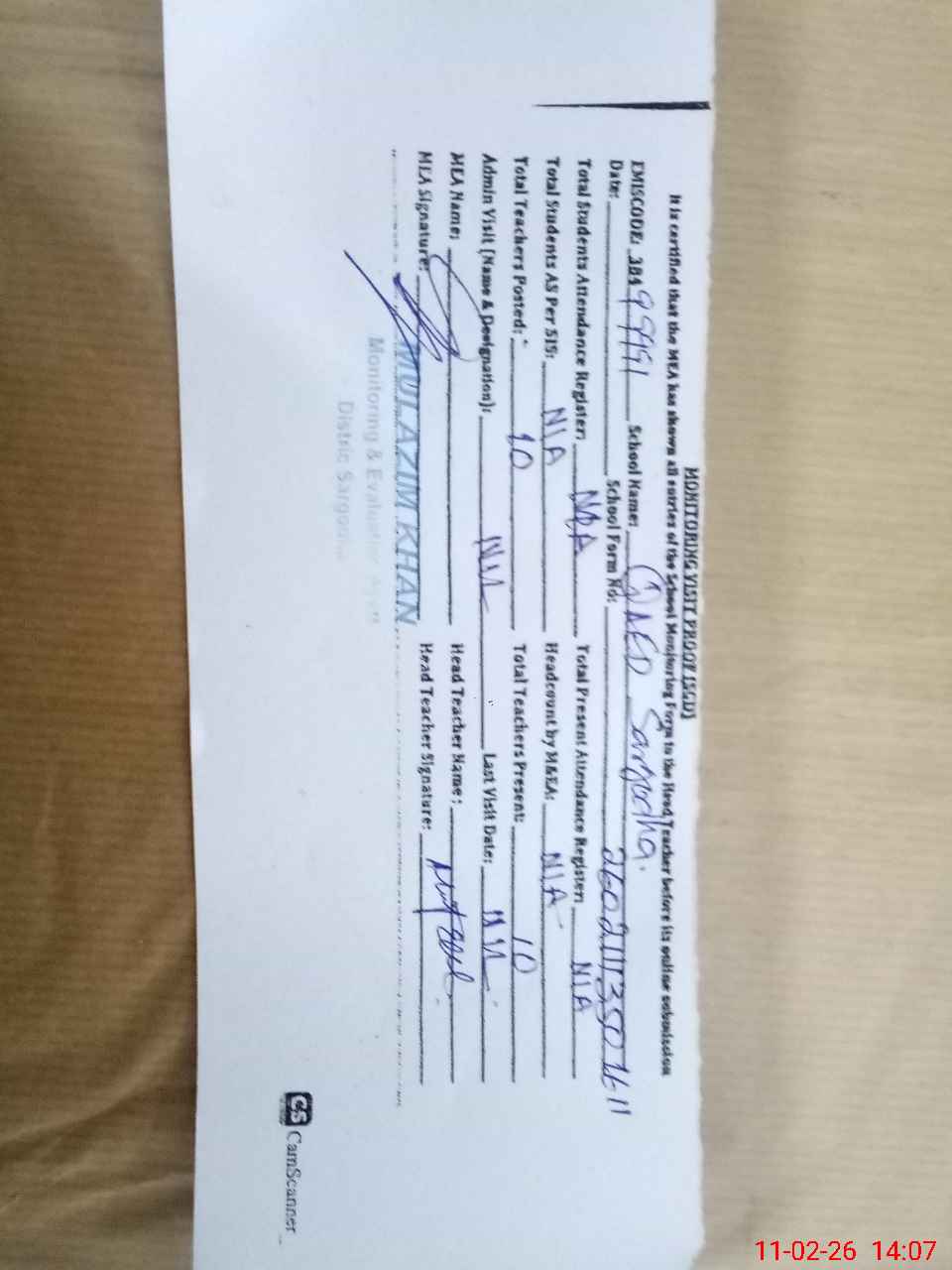 | EMIS Code: 38499991 | Name of School: QAED SARGODHA | |||