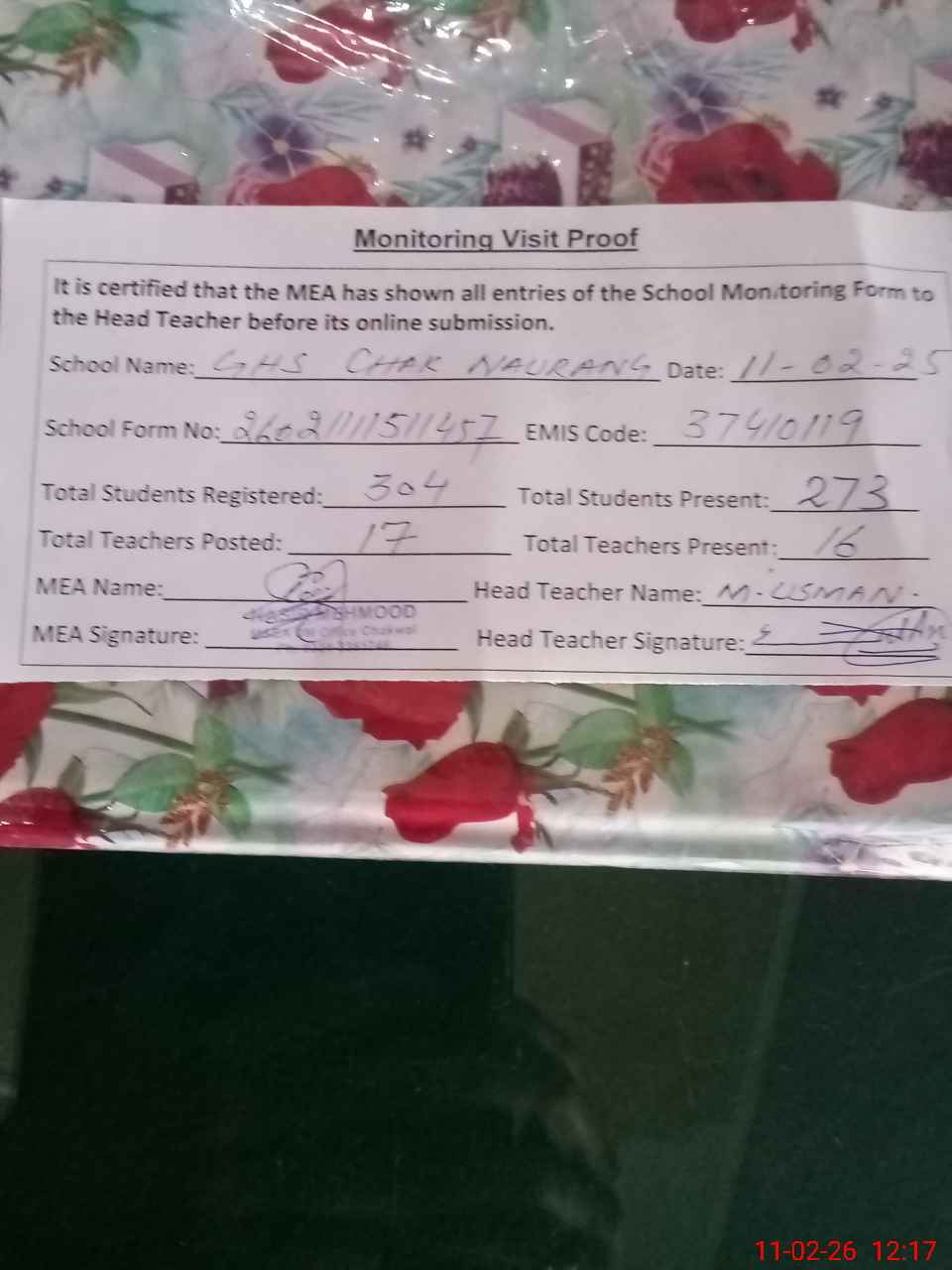 | EMIS Code: 37410119 | Name of School: GHS CHAK NAURANG | |||
