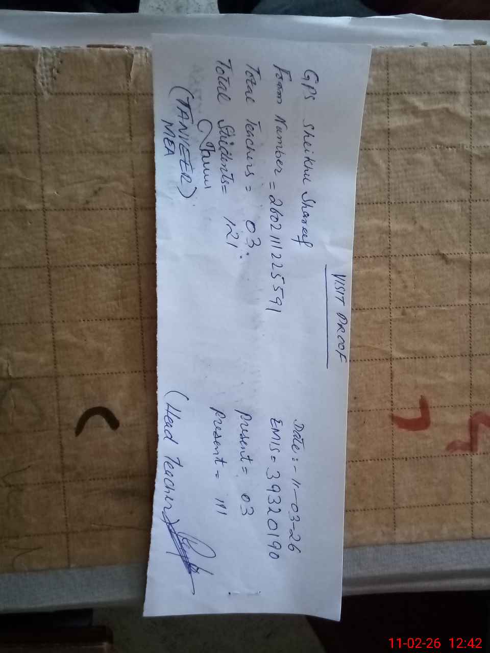| EMIS Code: 39320190 | Name of School: GPS SHEIKHU SHARIF | |||